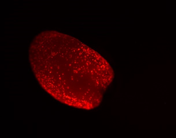 The Wisconsin Crop Innovation Center began researching cannabis/hemp in 2017 and became the first entity in the world to successfully, and heritably, genetically engineer the species in 2018. Our first engineered event contained the td-Tomato fluorescent marker as “proof of concept”, T1 progeny shown in the photo to the right.